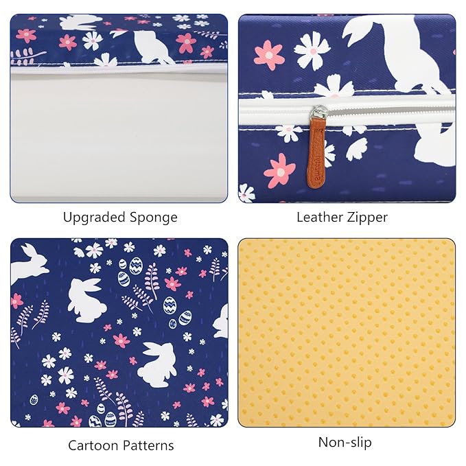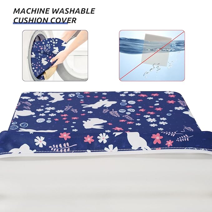 - ATTRACTIVE PATTERN: This toddler booster seat for dining table adopts an interesting animal pattern. The white little rabbit patterns are able to attract children's eyes, let them quickly like the booster cushion that can help them increase their height. The size of the booster cushion are 12 x 14 x 3.5 inches, which is suitable for most dining chairs