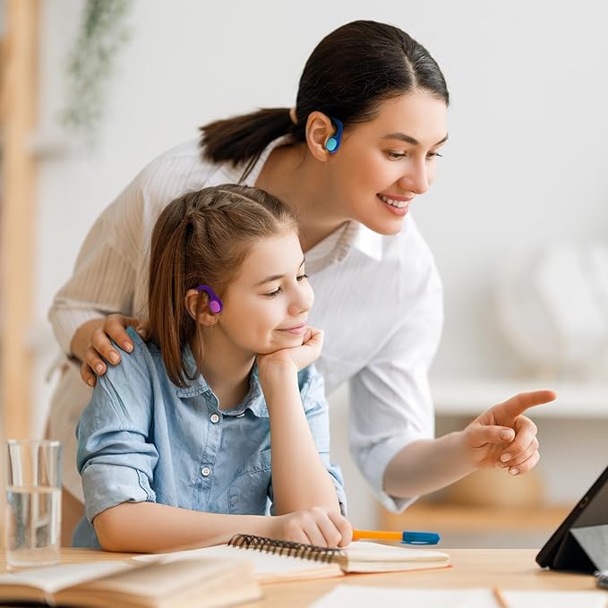- [Ultra-Safe Design for Your Kids]: Our premium headphones for kids feature a new generation open-ear design - Air Conduction Technology. They can directional deliver premium audio without muffling kids' ears which can ensure your kids can hear surrounding noise. This special design ensure your kids enjoy unique listening experience while studying at home/school, train/running, all while avoid some dangerous situations from happening.