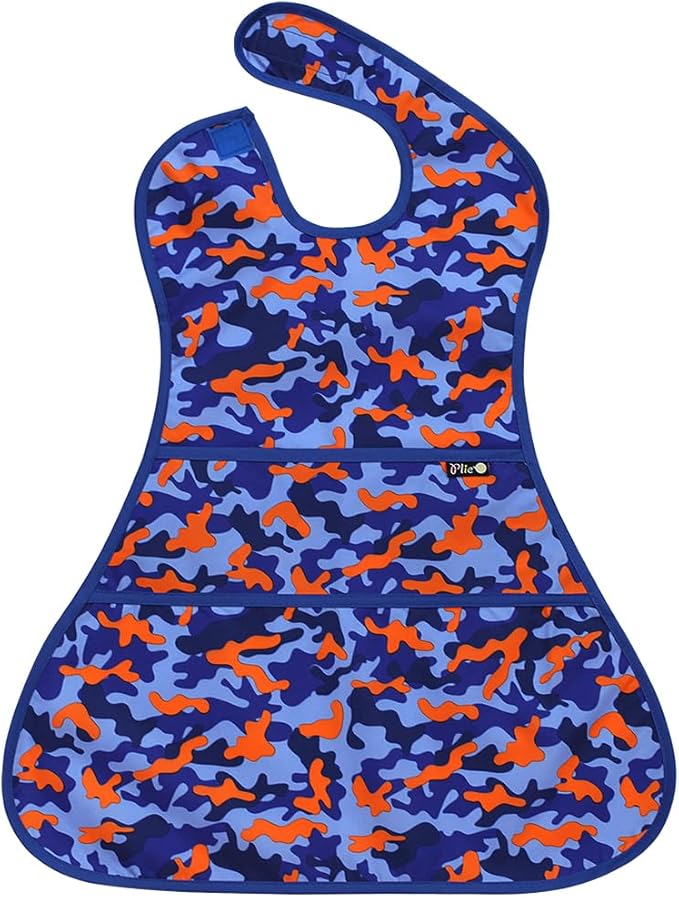 - Extra-long bib for full body coverage- Covers chest to knees to keep clothes clean during meals and messy activities.