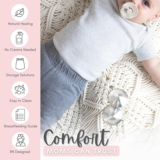- All-Natural Healing: Crafted from 99.9% silver, our nipple shields for breastfeeding are hypoallergenic & promote soothing comfort. They help relieve sore & cracked nipples without the use of creams, allowing you to cherish your breastfeeding bond.
