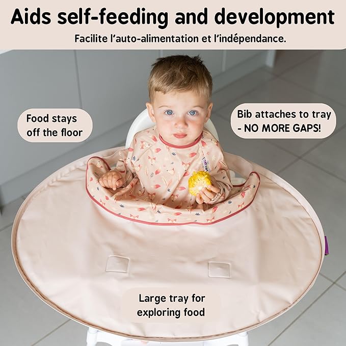 Tidy Tot- Baby Bib & Tray Kit - Mess Proof Long Sleeve Smock Attaches to Feeding Mat, Waterproof Bib - Fits Babies 6-24 Month