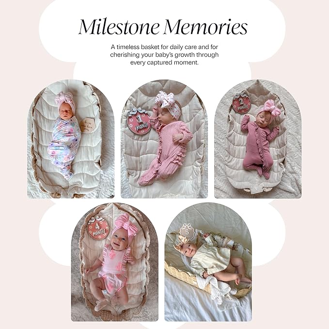 - LEAF-SHAPED LINER FOR UNFORGETTABLE MILESTONE PHOTOS - a luxurious design that is unique to Bebe Bask makes this changing table basket an ideal baby photo props for making memorable baby photos. Softly cushioned cotton and machine washable