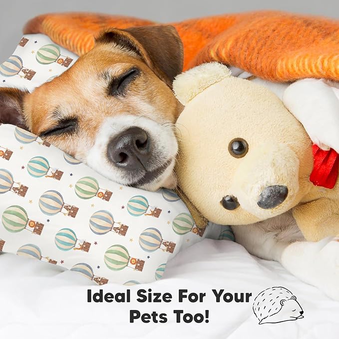 Toddler Pillow with Pillowcase - 13x18 My Little Dreamy Kids Travel Bed Pillows for Sleeping, Organic Cotton Small Pillowcase, Soft & Breathable, Machine Washable, Toddlers 2-5 (Hot Air Balloon)