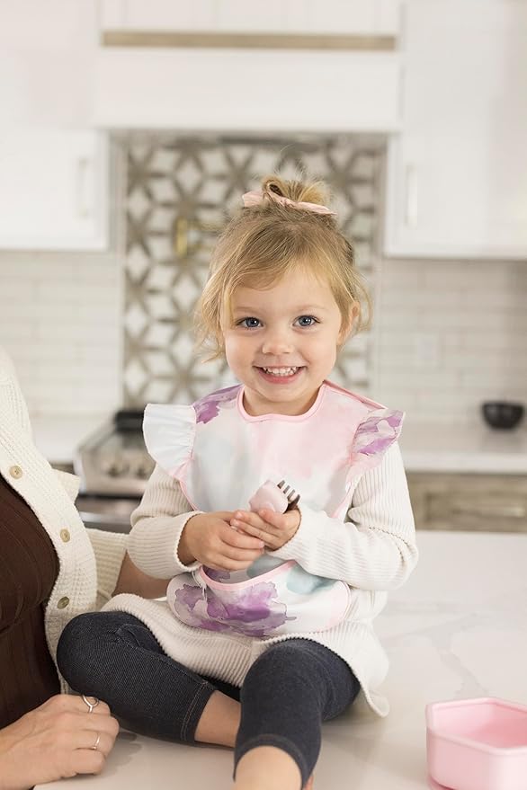 Tiny Twinkle Mess Proof Baby Bibs for Eating – Waterproof, Wipeable Toddler Bibs with Pocket – Baby Food Bibs for Girls & Boys(3 Pack,Cotton Candy)