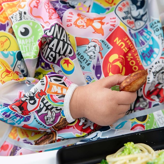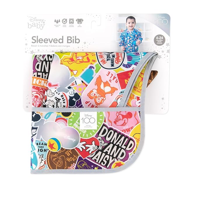 Bumkins Disney Sleeved Bib for Girl or Boy, Baby and Toddler for 6-24 Mos, Essential Must Have for Eating, Feeding, Baby Led Weaning Supplies, Long Sleeve Mess Saving, 100 Years of Fun