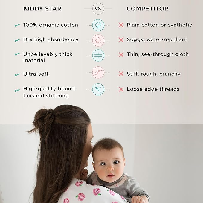 - ๐ฟ 100% ORGANIC COTTON โ PURE COMFORT FOR BABY: Crafted from natural cotton, these burp cloths are soft, breathable, and gentle on even the most sensitive skin. Free from all harmful substances, they offer peace of mind for parents and pure comfort for little ones.