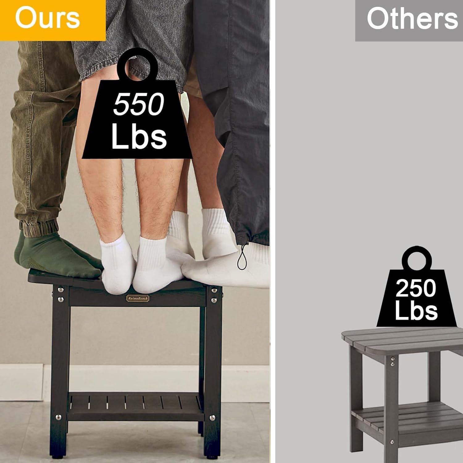- 【Material & Size】Our poly shower bench is made of HDPS (polystyrene) with 304 stainless screws which never gets rust,, rotting or crack after prolonged exposure to humidity, no splinters and no maintenance, 21 x 12.6 x 17.5 Inches enough large to sit (THE MOST IMPORTANT IS NO MAINTENANCE).