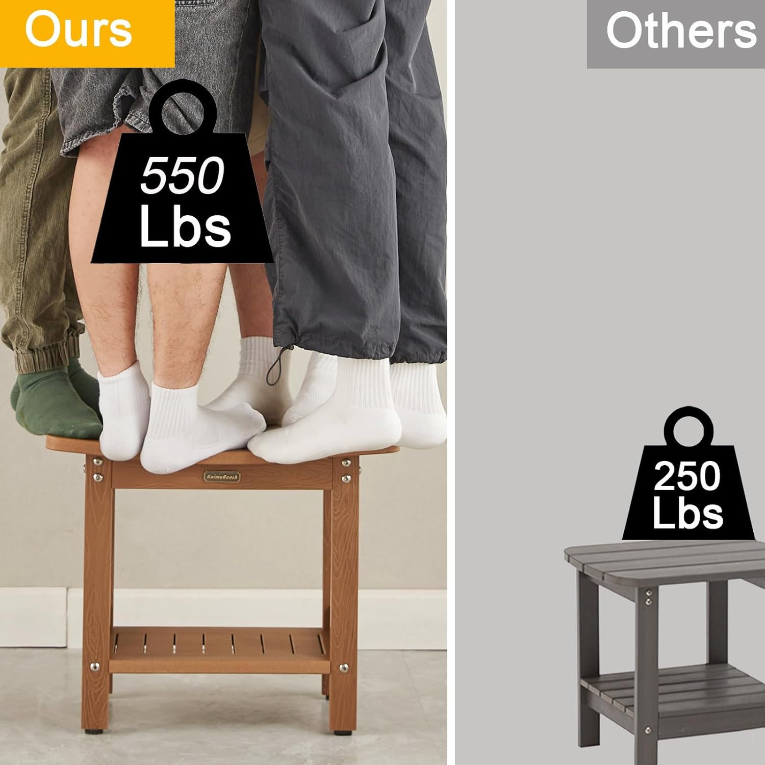 - 【Material & Size】Our poly shower bench is made of HDPS (polystyrene) with 304 stainless screws which never gets rust, rotting or crack after prolonged exposure to humidity, no splinters and no maintenance, 21 x 12.6 x 17.5 Inches enough large to sit (THE MOST IMPORTANT IS NO MAINTENANCE).