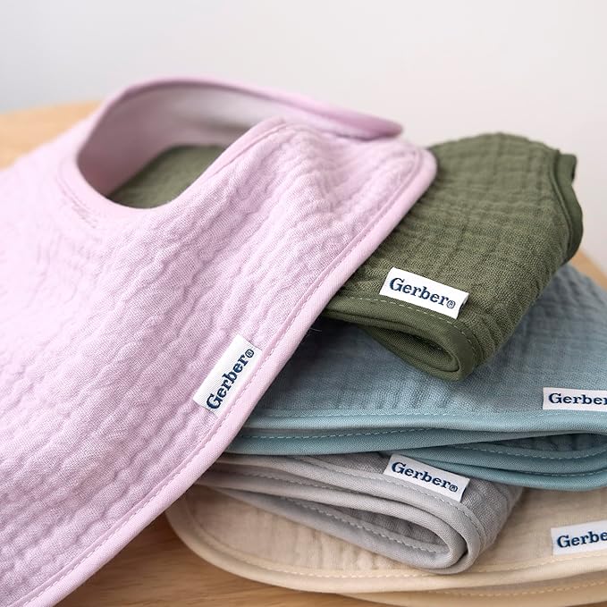 - Absolutely Absorbent: Made from 100% muslin cotton, these absorbent bibs provide a soft feel against your baby’s skin. Protect against snack time spills or soak up teething drool to keep baby clean and dry.