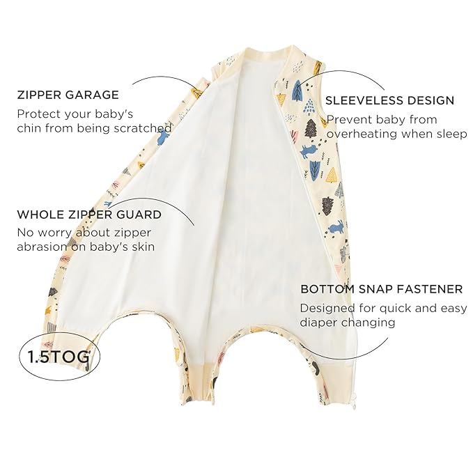 - UNIQUE CROTCH SNAPS - This toddler sleeping sack has a row of crotch snaps on the crotch that can be fully opened. This feature together with 2-way zipper makes it more convenient for changing diaper. Side Open zipper helps distribute pressure evenly along the baby's body, minimizing discomfort and ensuring a snug yet gentle fit. Widened zipper protectors on the top will protect baby's jaw from scratching