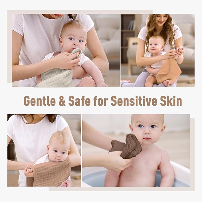 Yoofoss Muslin Burp Cloths for Baby 10 Pack 100% Organic Cotton Baby Washcloths for Boys Girls Large 20''X10'' Super Soft and Absorbent Gradient Brown