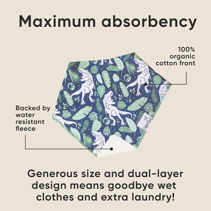 - MAXIMUM ABSORPTION: Fronted by ultra-soft Organic Cotton and lined with water-resistant polyester fleece to provide an extra layer of absorbency. Each bib is crafted with dual-layer protection against heavy drooling or spit-up, keeping your baby dry and comfortable.