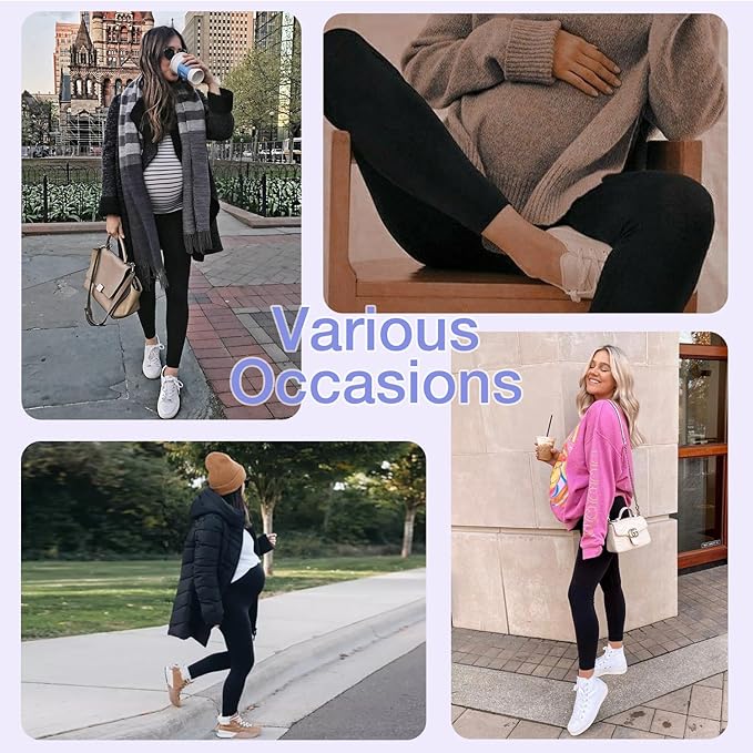 - S-XL Sizes with Exact Fits – No more guessing! The sizes go from S (Waist 27-32in, Hip 33-35in, Inseam 26.4in) to XL (Waist 36-43in, Hip 39-41in, Inseam 26.8in)—You found your perfect fit easily. These maternity leggings never feel too tight, just snug and cozy.