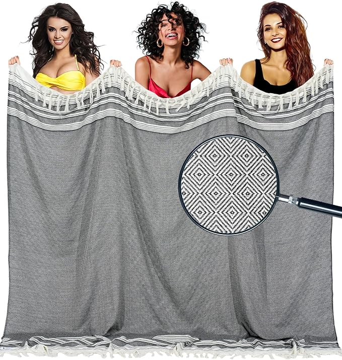 Oversized Turkish Beach Towel Blanket Cotton Giant XL Sandproof Towels Huge Linen XXL Extra Large Big Throw Quilt Blankets for Adults Cloud Travel Camping Glamping Accessories Essentials