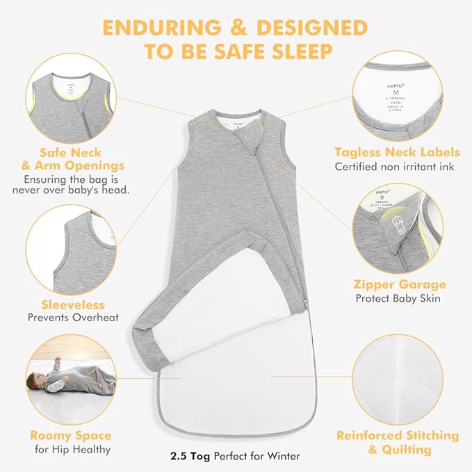 HAPIU Rayon Made from Bamboo Winter Baby Sleep Sack 2.5 TOG, 2-Way Zipper YKK, Warm Quilted Wearable Blanket