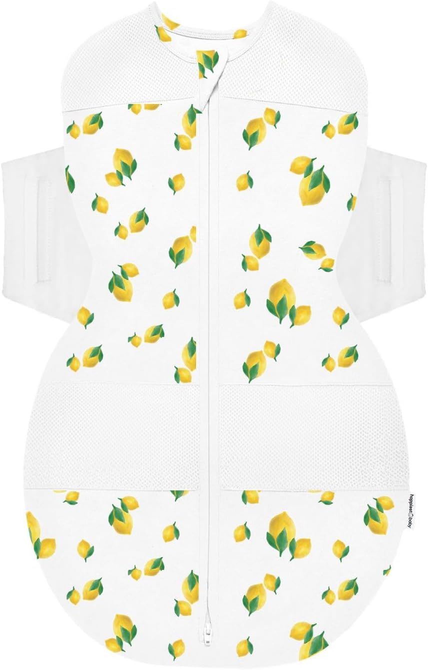 Happiest Baby SNOO Sleep Sack - 100% Organic Cotton Baby Swaddle Blanket - Doctor Designed Promotes Healthy Hip Development (Ivory Lemons, X-Large)
