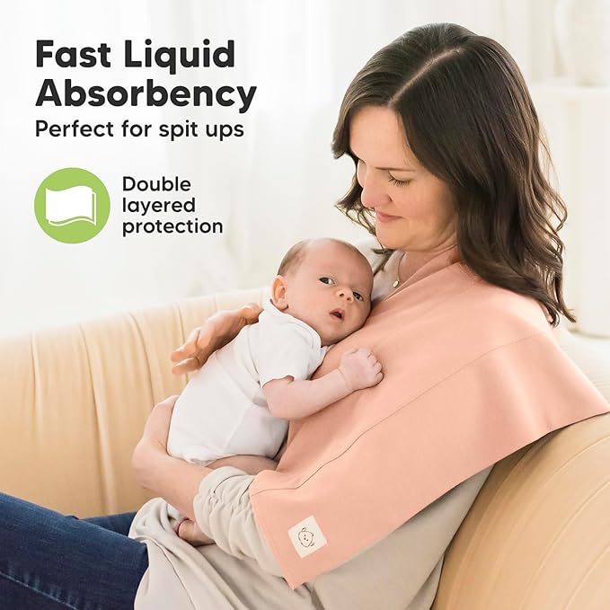 - Super Absorbent, Catches Liquid Well - These burping cloths for babies sits on your shoulder comfortably, and the thick organic cotton catches rolling liquid and spit ups well.
