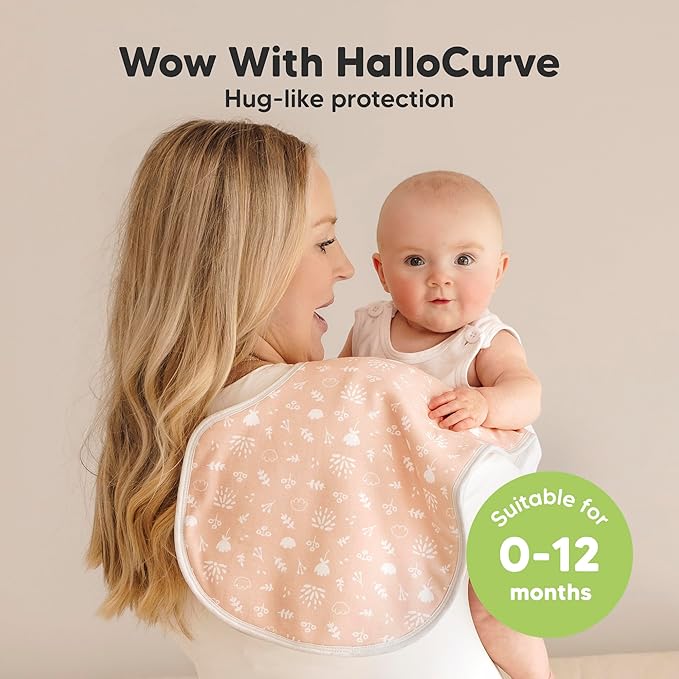 - Hallo to More Coverage - Our organic baby burp cloths for girls and boys, sized at 22" x 12", are extra large and wide to fully cover your shoulders. The unique Hallo Curve provides more coverage & comfort, perfect for spit ups and feeding mishaps.