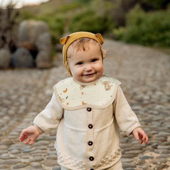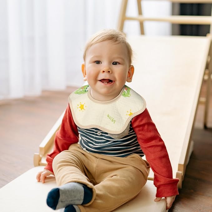 - Highly Absorbent Magic: The three layers of absorbent muslin cotton effortlessly capture and retain moisture, ensuring your baby stays clean and dry during meals. The added waterproof layer acts as a shield, providing an extra layer of defense against spills.