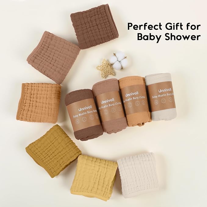 - ❤Safety Comes First: Made from 100% premium quality cotton,Unnivoll muslin burp cloths is certified to meet Consumer Product Safety Commission (CPSC) guidelines, eliminate all potential risks and provide a soft, breathable, cloud like comfort for your little one. The natural muslin is also suitable for all skin types including sensitive and delicate skin, perfectly use on the face, hand and body.