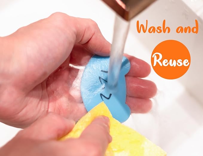 - Easy to use. Write on the label, let it dry and wash with soap and water and reuse.
