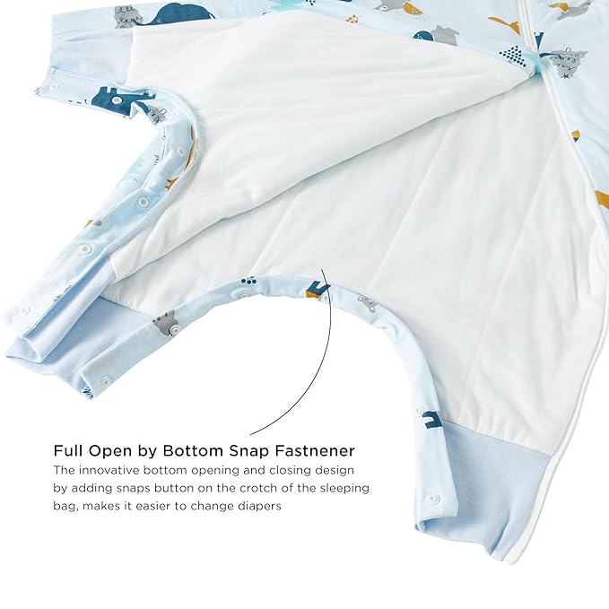 - UNIQUE CROTCH SNAPS - This toddler sleeping sack has a row of crotch snaps on the crotch that can be fully opened. This feature together with 2-way zipper makes it more convenient for changing diaper. Side Open zipper helps distribute pressure evenly along the baby's body, minimizing discomfort and ensuring a snug yet gentle fit. Widened zipper protectors on the top will protect baby's jaw from scratching