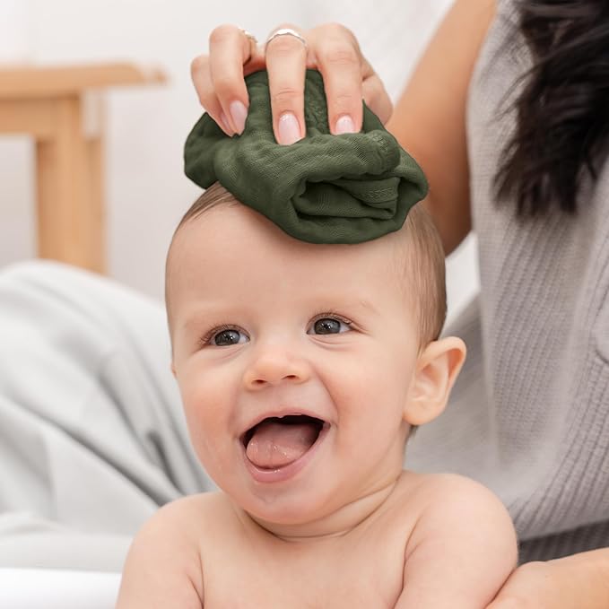 Comfy Cubs Muslin Baby Washcloths 6 Pack - Soft 6-Layer Cotton Wash Cloths for Sensitive Skin - 10"x10" Large, Gentle, Absorbent Infant Essentials for Newborn and Toddlers - Kelp