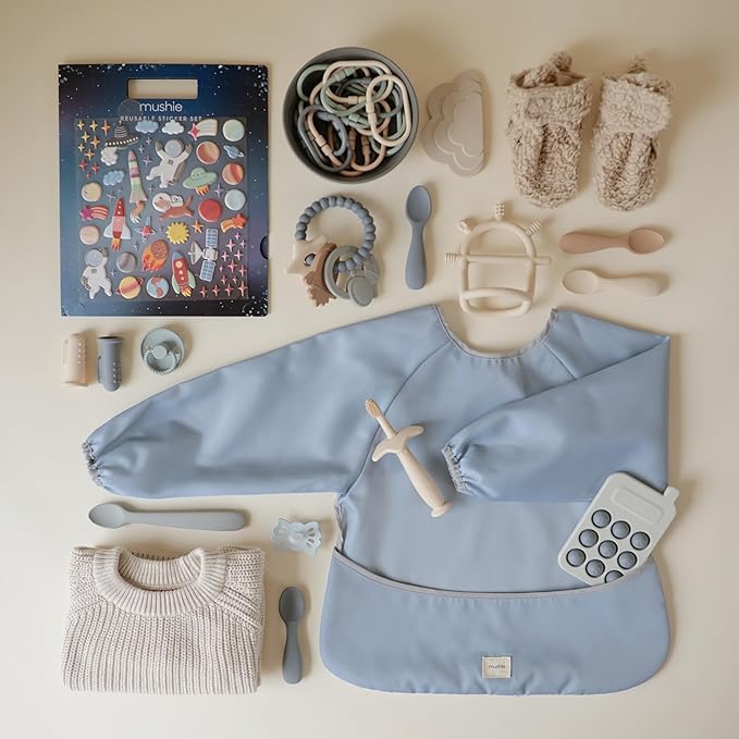 • Mess & Worry Free: Keep the kids clean at mealtimes, during art projects or in other messy moments with the mushie water resistant long sleeve bib.