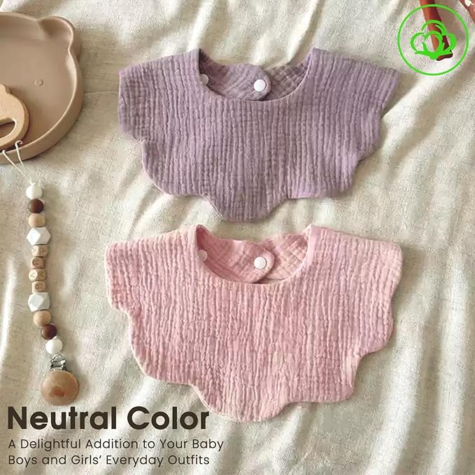- Elevate your baby's mealtime experience with our uniquely designed baby bibs. Crafted with care and creativity, these bibs blend fashion and functionality seamlessly. Luxurious Comfort in Every Layer: Our bibs feature four layers of 100% muslin cotton, providing a soft and gentle touch for your baby's sensitive skin. The layers work harmoniously to ensure supreme comfort during mealtime, making messy moments a breeze.