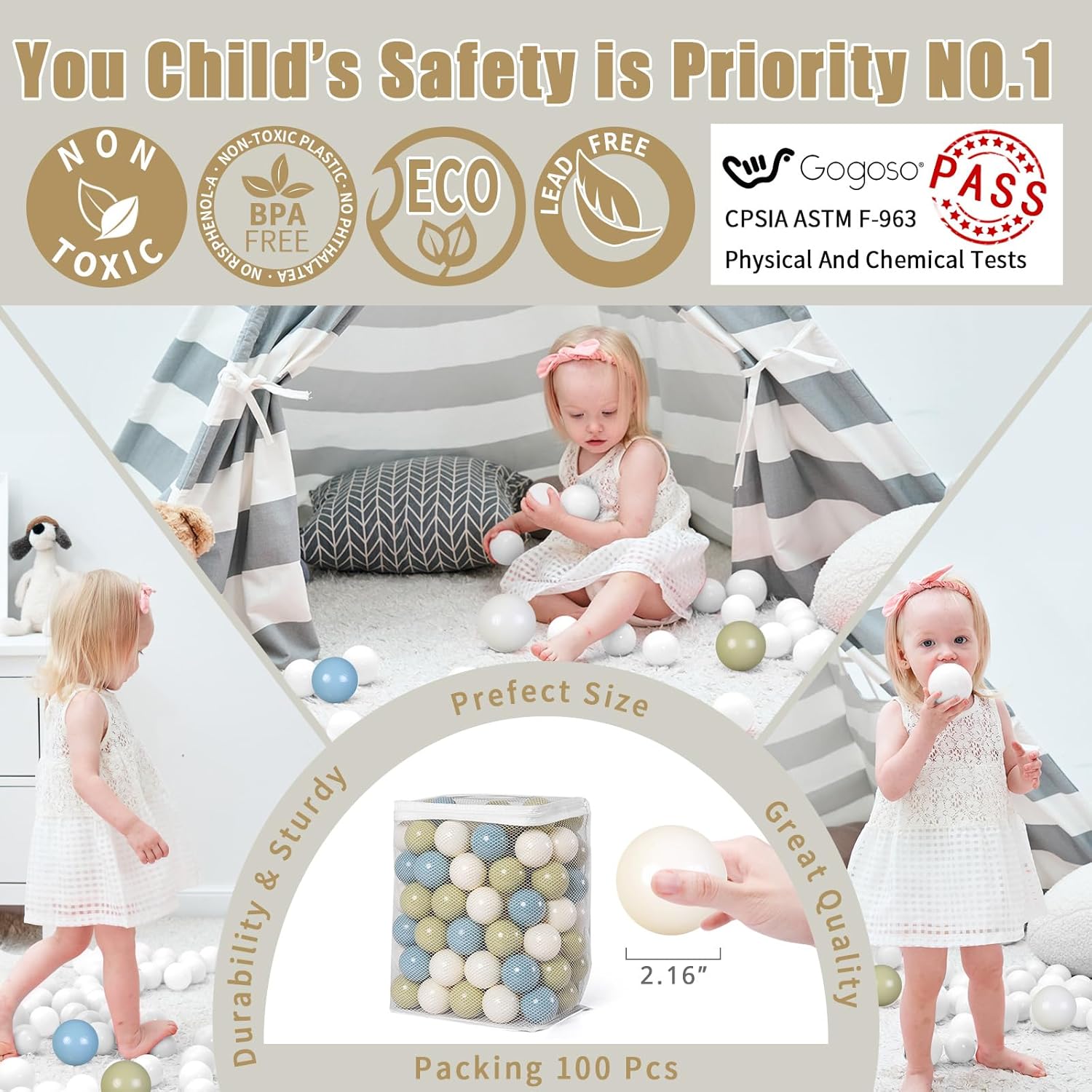 - [Durable and Safe] Our GOGOSO ball pit balls are made from non-toxic, BPA-free, and lead-free materials, ensuring safety for kids. With a thickness that prevents accidental swallowing, these 2.75-inch ball pit balls are perfect for little hands. They are large enough to provide endless fun and excitement for your kids.
