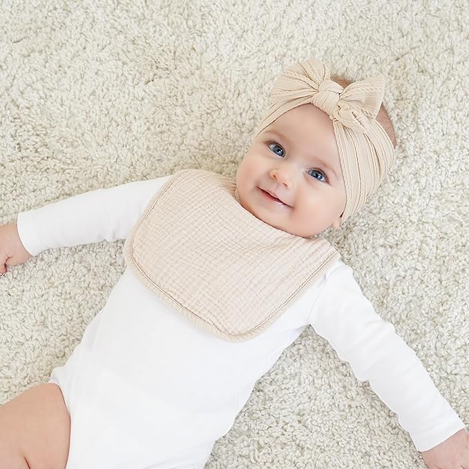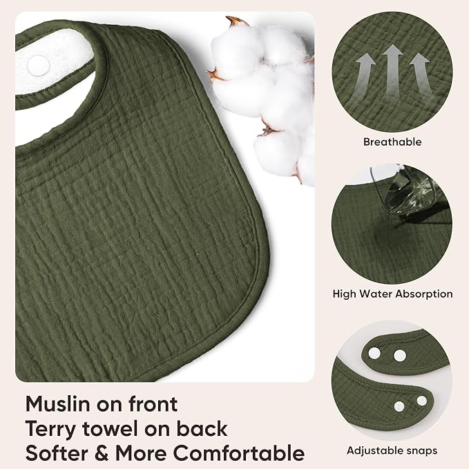 - 100% Cotton: Our Bearmoss muslin baby bibs are made with 100% cotton material that is soft and gentle for your baby's delicate skin. With muslin fabric, making them lightweight and breathable, also perfect for everyday wear.