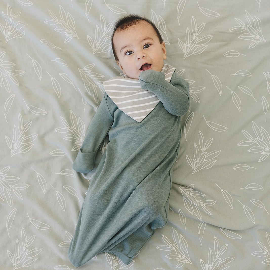 • PREMIUM NATURAL FABRICS: These baby drool bibs feature a 100% merino wool lining and 100% GOTS-certified organic cotton on the front. The merino wool ensures your little one stays dry and comfortable, while the outer organic cotton adds superior absorbency. Both fabrics are cuddly-soft to the touch, hypoallergenic, and gentle against baby’s skin.