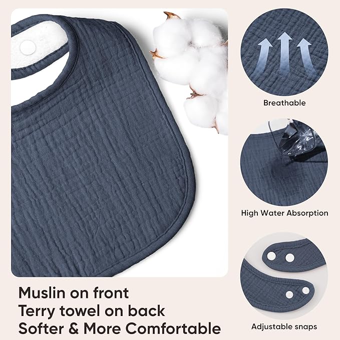 - 100% Cotton: Bearmoss muslin baby bibs are made with 100% cotton material that is soft and gentle for your baby's delicate skin. With soft muslin fabric, making baby bibs lightweight and breathable, also perfect for everyday wear.