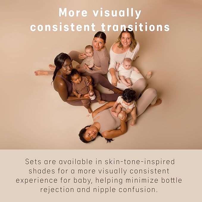 - Available in 4 skin-tone-inspired shades for a visually consistent transition. Different pacifier sizes available according to baby's age. First size (-2-2m) suitable for baby's first pacifier, premature babies or low birth weight babies. Patented medical grade anti-colic bag within baby bottle contracts as baby sucks, preventing baby from swallowing air. Variety of nipples available according to the baby's age and desired flow.