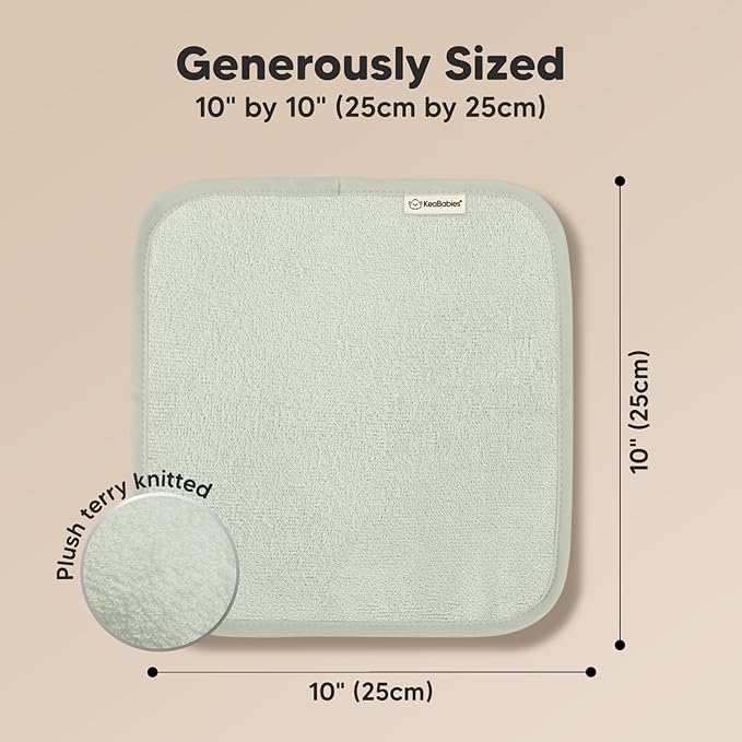 - 6-Pack KeaBabies Baby Wash Cloths - Sized at 10"x10" (25x25cm), these ultra-soft, 500GSM premium viscose derived from bamboo wash cloths for babies are perfect baby bath essentials.
