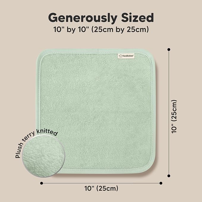 - 6-Pack KeaBabies Baby Wash Cloths - Sized at 10"x10" (25x25cm), these ultra-soft, 500GSM premium viscose derived from bamboo wash cloths for babies are perfect baby bath essentials.
