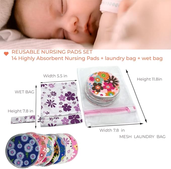 Reusable Nursing Pads 14 Pack,Washable Breast Pads