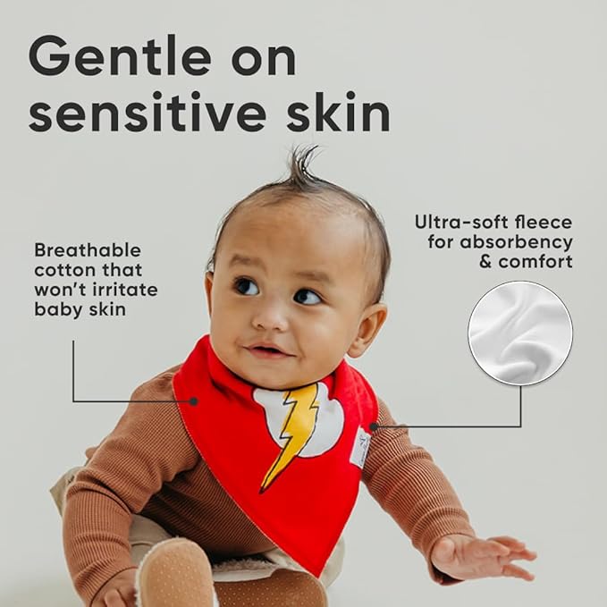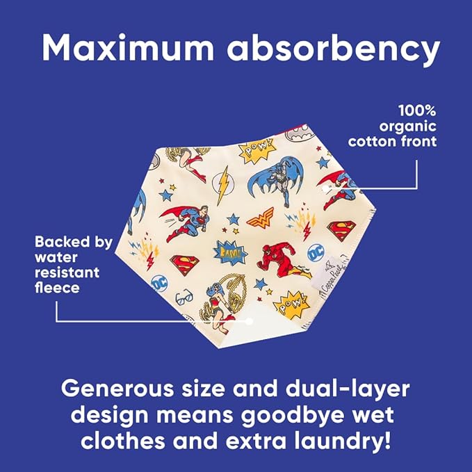 - MAXIMUM ABSORPTION: Fronted by ultra-soft Organic Cotton and lined with water-resistant polyester fleece to provide an extra layer of absorbency. Each bib is crafted with dual-layer protection against heavy drooling or spit-up, keeping your baby dry and comfortable.