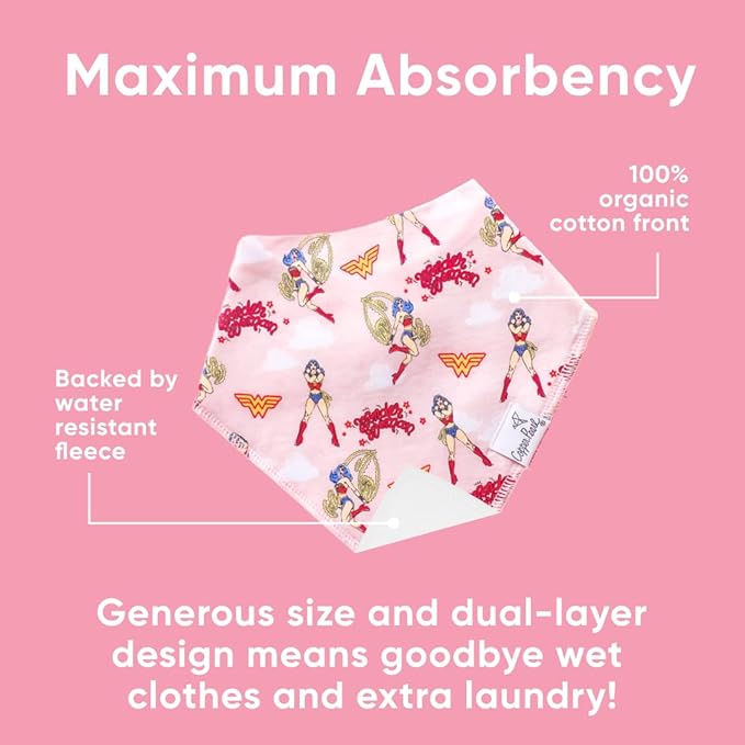 - MAXIMUM ABSORPTION: Fronted by ultra-soft Organic Cotton and lined with water-resistant polyester fleece to provide an extra layer of absorbency. Each bib is crafted with dual-layer protection against heavy drooling or spit-up, keeping your baby dry and comfortable.