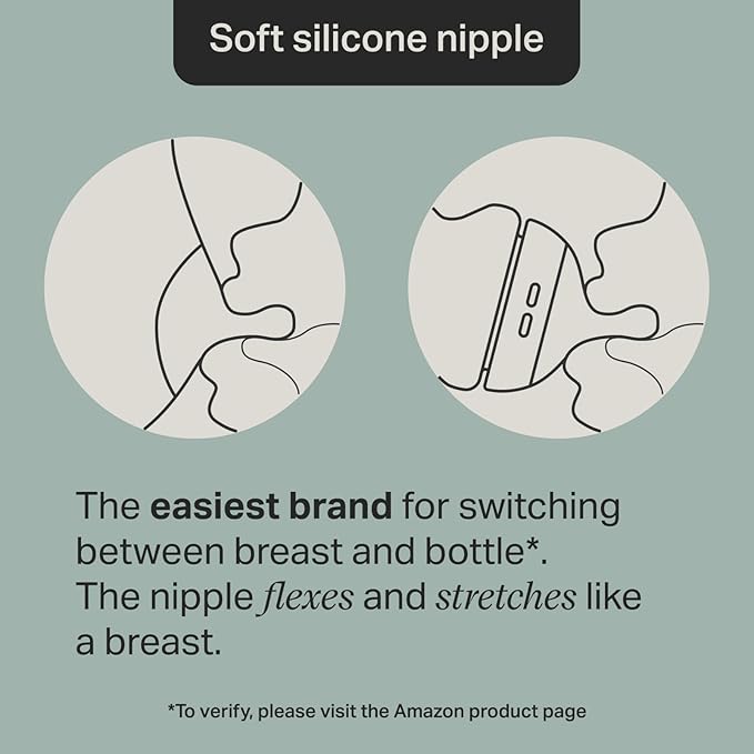 - Pace feeding: The soft silicone nipple flexes and stretches like a breast and allows your baby to feed comfortably at their own pace.