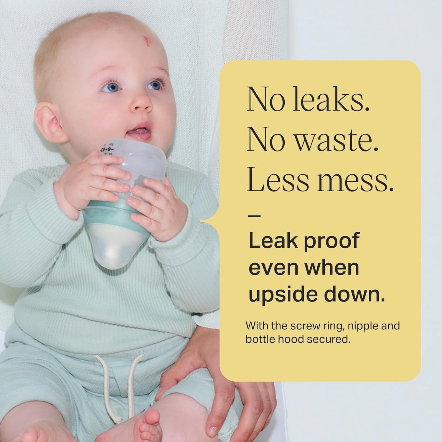 - 100% leakproof: When the screw ring, nipple and cap are all secured, your baby bottle is completely mess-free and leakproof, even if it’s turned upside down.