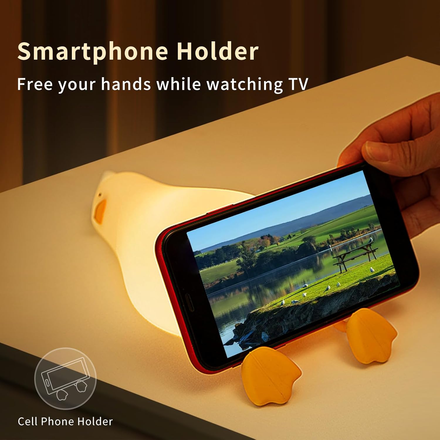 - BABY-FRIENDLY DESIGN: The lying duck night light is made of high-quality BPA-free silicone, which is soft, lightweight, safe and skin-friendly.The 360-degree soft light protects the eyes, specially designed for children's interaction.β