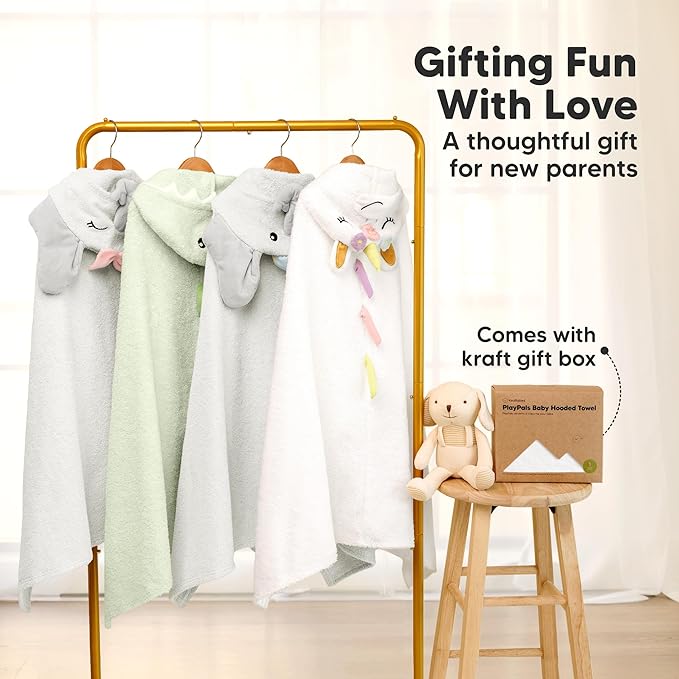 - Adorable Gift - Steal the show with the gender-neutral PlayPals Baby Towels with hood for boy and girl, featuring cute animal details. Packaged in a kraft box, this bath towel is the ideal baby shower gift for new parents, bringing warmth & cuteness.