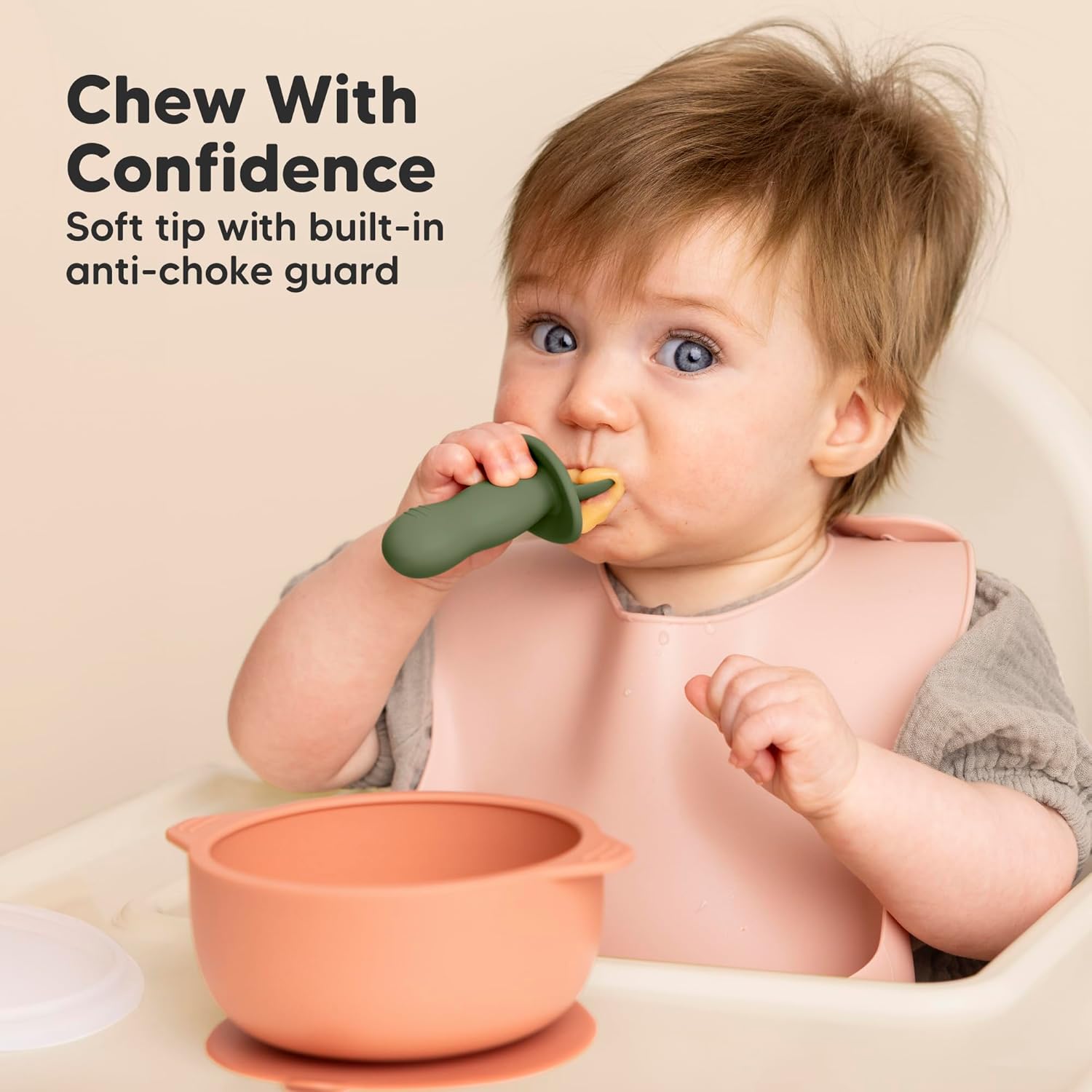 - Baby-Safe Design - Crafted for tiny hands, these baby food utensils are suitable for infants 6-18 months. The built-in anti-choke barrier & ergonomic grip handle allow your baby to explore new foods safely, perfect for the first stage BLW.
