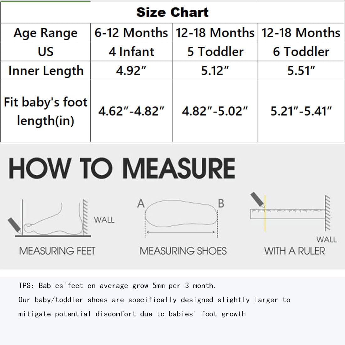 • Non-slip Sole: These baby walking shoes with durable sole prevent your baby from slipping, help baby learn balance