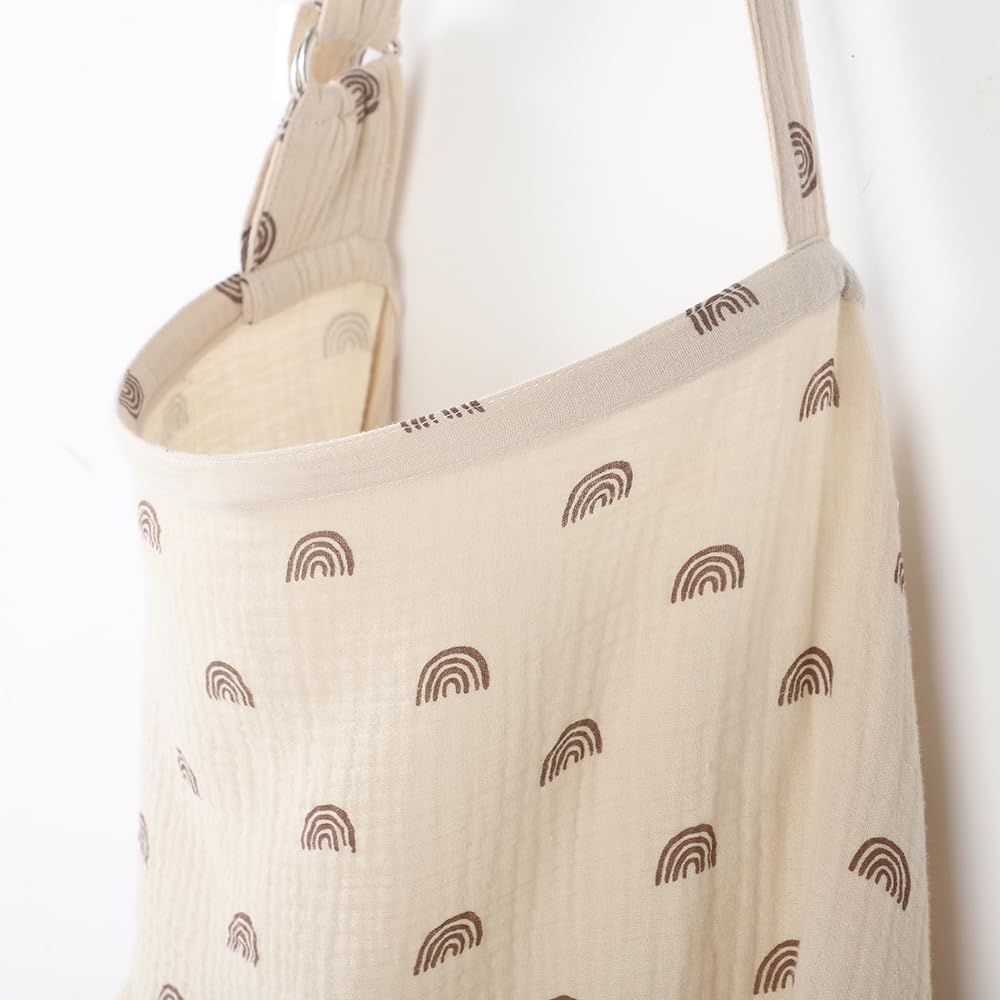 Superior Design Evergrwn Multi-use Privacy Nursing Cover Up for Breastfeeding, 100% Cotton Breathable Nursing Cover with Arch Neckline, Muslin Breastfeeding Cover, Baby Essentials (Rainbow Beige)