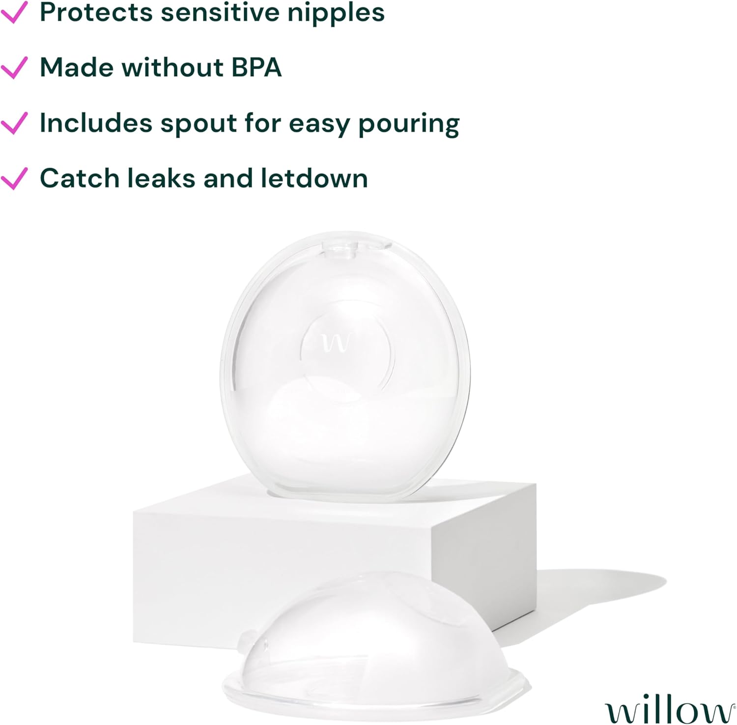 - Wearable Nursing Cups: Breastfeeding success starts with Willow; Manage milk letdowns and leaks in between pumping and feed sessions with out silicone milk catcher 2 pack; Spout allows eay pouring into a bottle or milk storage bag