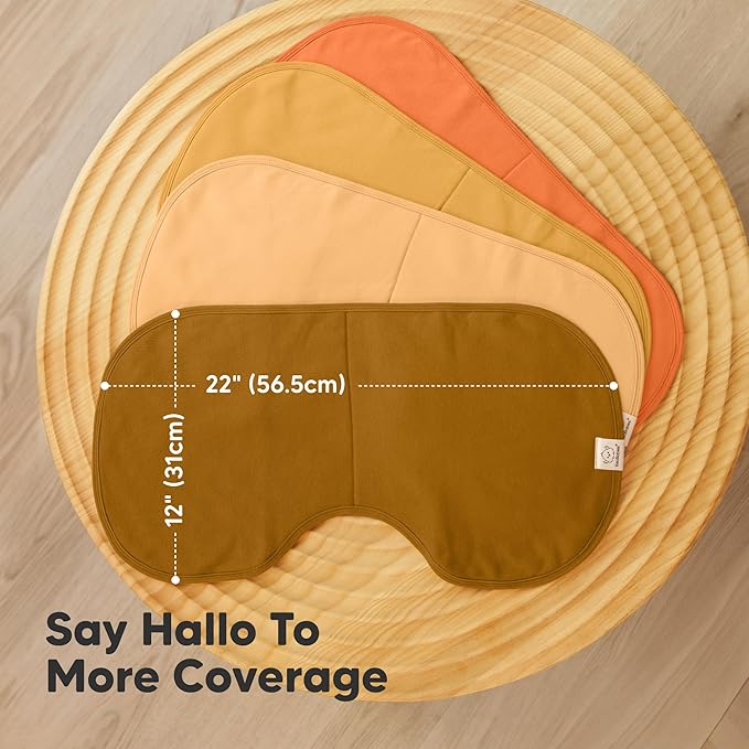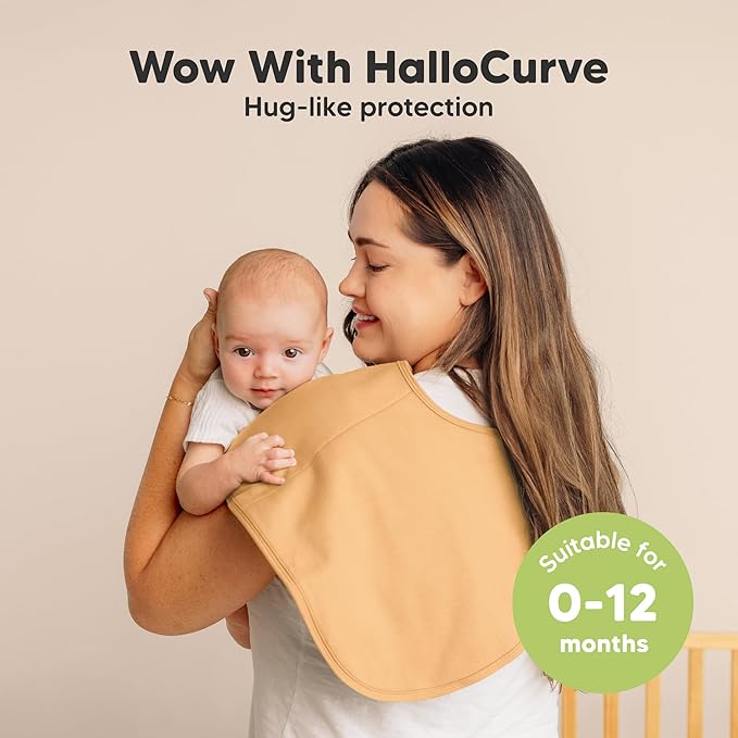 - Hallo to More Coverage - Our organic baby burp cloths for girls and boys, sized at 22" x 12", are extra large and wide to fully cover your shoulders. The unique Hallo Curve provides more coverage & comfort, perfect for spit ups and feeding mishaps.