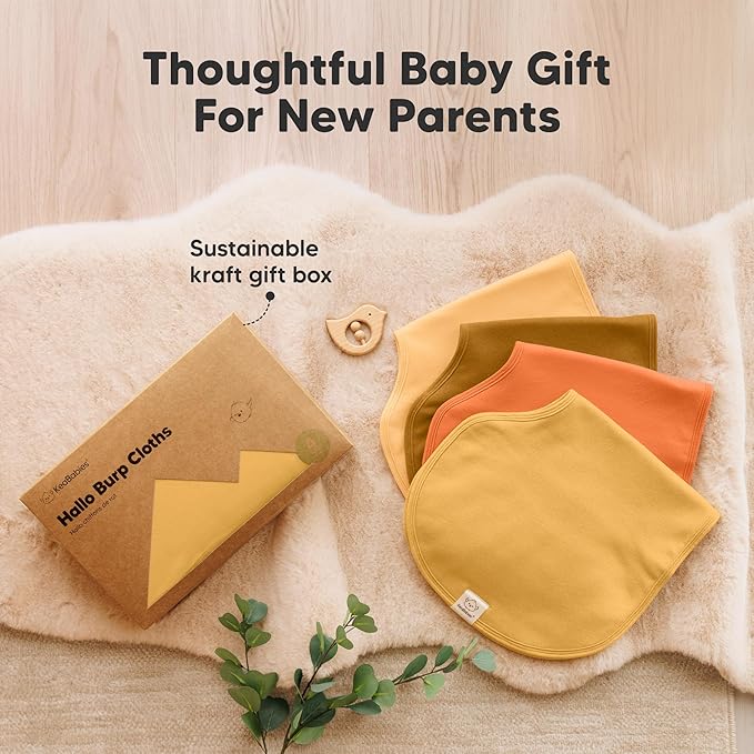 - Thoughtful Gift - Each pack of 4 burp cloths comes beautifully packaged in a kraft gift box. Pair the Hallo Burp Cloths with the Hallo Baby Bibs—perfect for any baby registry. Both are machine washable and dryer-friendly, ideal for busy parents.