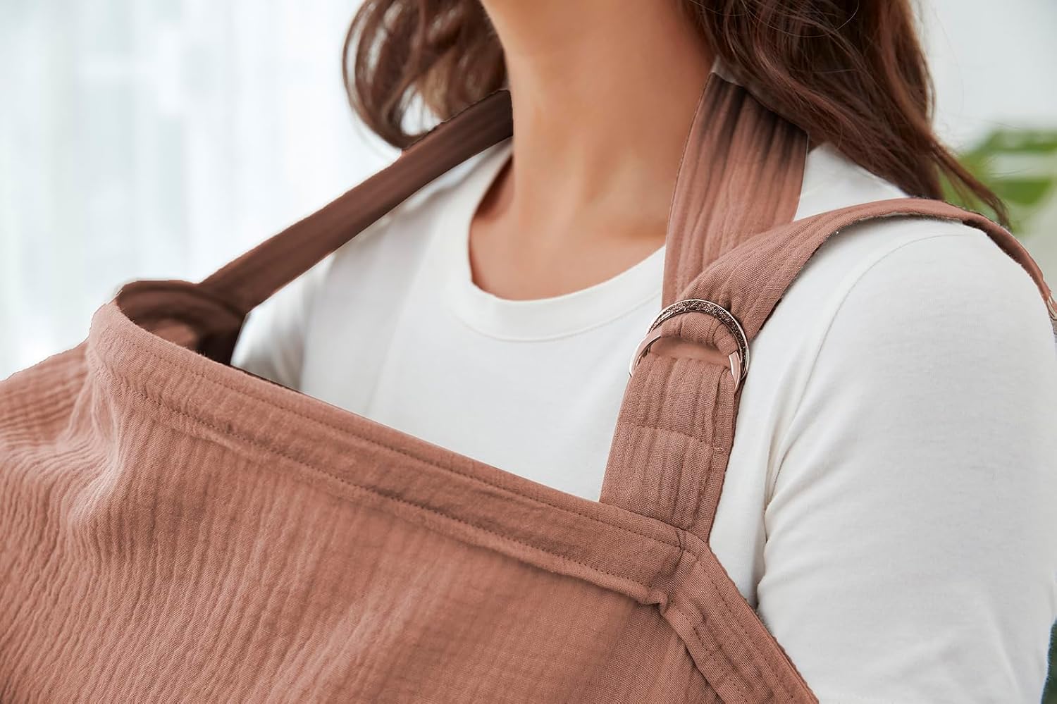 - Muslin Cotton Fabric: Nursing cover for breastfeeding are made of 100% cotton (Muslin), it's free from harmful chemicals and are gentle on even the most sensitive skin. lightweight and breathable. It ensures cool and cozy for both you and your baby, even in warm weather. The muslin material would stay soft after every wash.